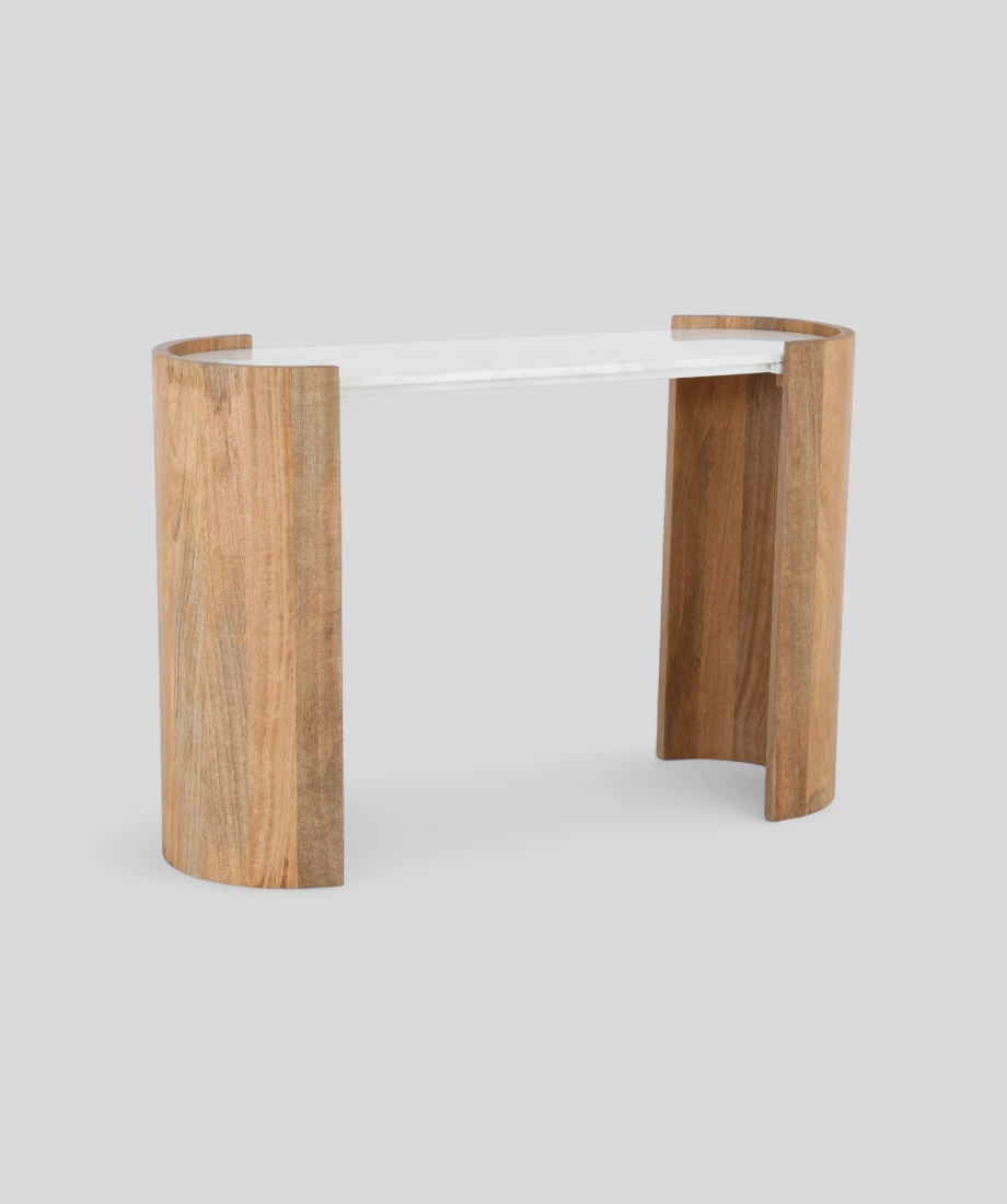 Elevate your entryway or living space with this refined console table, featuring a luxurious White Banswara marble top that rests gracefully on a sculptural mango wood base in a natural finish. The unique curved-leg design blends modern elegance with organic warmth, making it a standout piece in any contemporary or transitional interior.