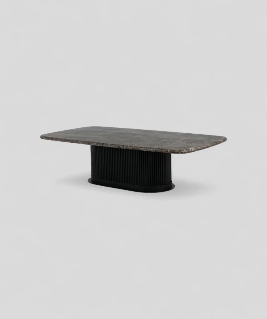 This striking side table blends industrial strength with modern elegance, making it a perfect addition to contemporary interiors. The structure of the table is crafted from durable iron, finished in a sleek black coating that gives it a clean, minimalistic aesthetic. Its strong vertical supports extend above the tabletop, framing the piece with bold lines and adding a sculptural element to the design.