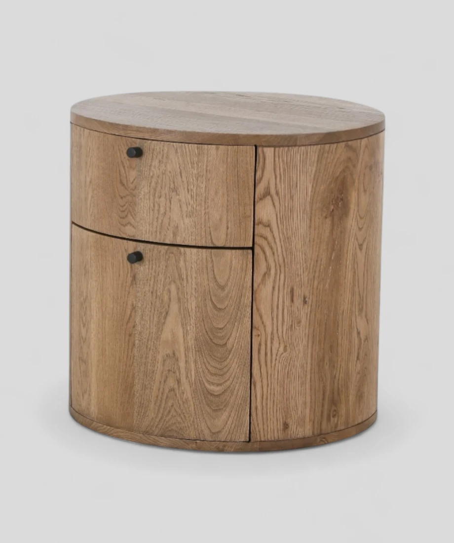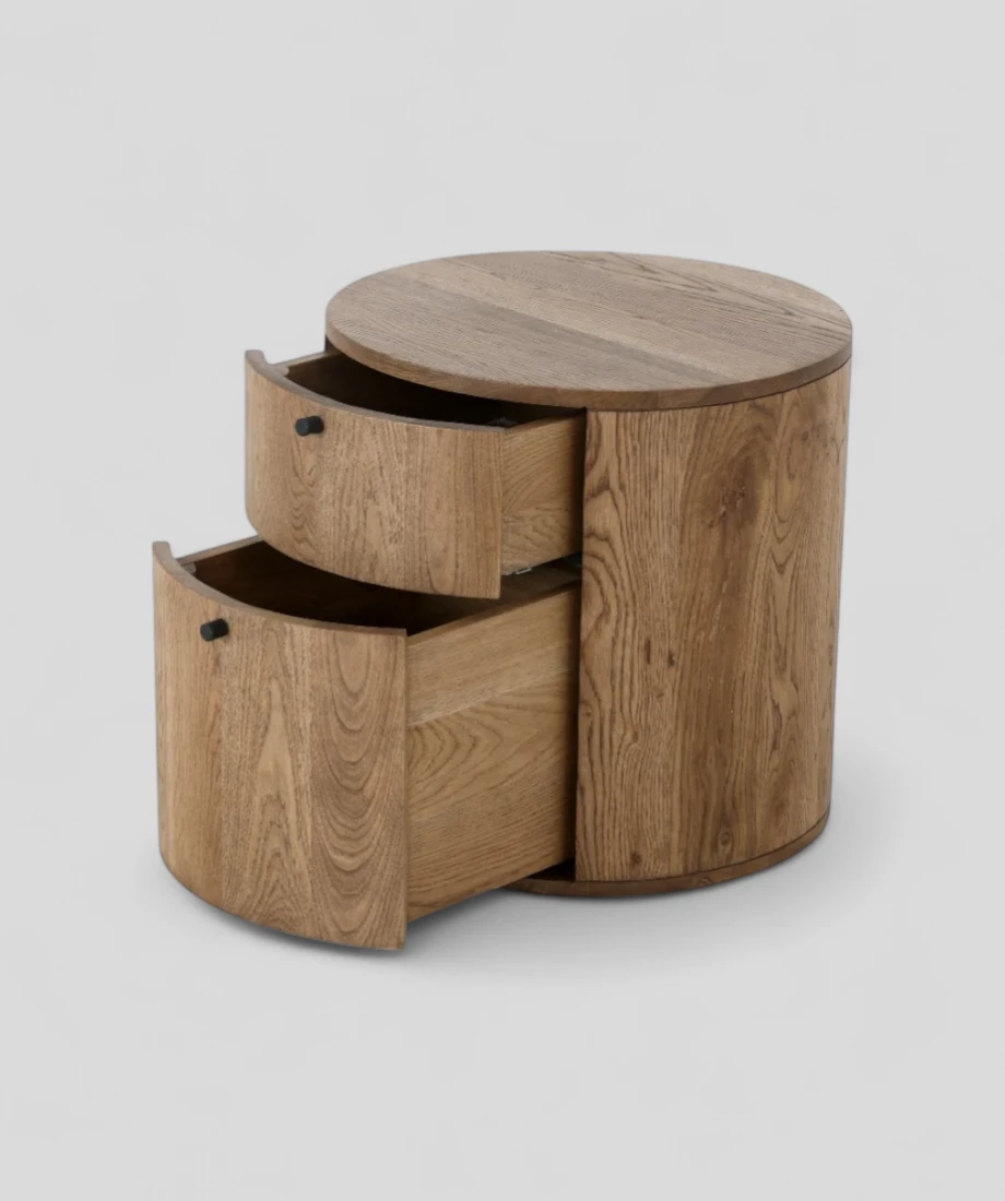 The nightstand’s streamlined silhouette thoughtfully designed for both form and function, this two-drawer nightstand brings effortless organization to your room and versatile finish allow it to integrate seamlessly into a wide range of interiors, from minimalist and contemporary to rustic or transitional styles. Whether placed next to a bed, sofa, or lounge chair, it offers reliable storage with a refined, understated elegance.